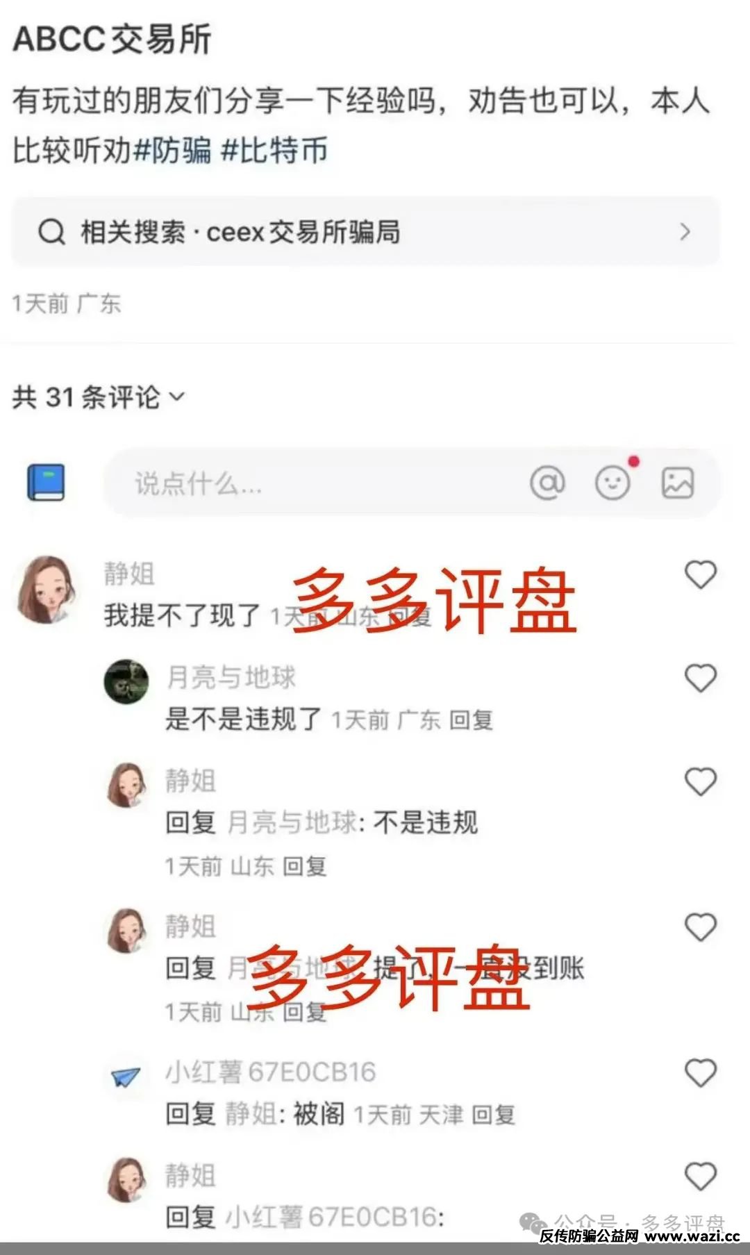 近期,ABCC 交易所的跟单资金盘骗局持续引发关注。该平台与布鲁交易所同属柬埔寨诈骗团伙,已吸纳 7 万会员,正处于高度风险状态,随时可能崩盘跑路。 平台频繁以 “个别会员资金异常” 为由...