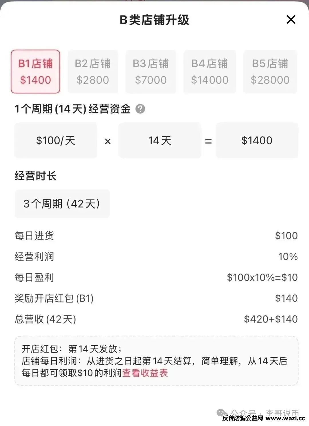 其主打的“全托管店铺”模式更需警惕:用户需投入300-20000美元“进货”,由平台代运营。看似省心的模式背后,利润来源却模糊不清:商品销售数据从不公开,交易记录真实性无从考证,极可能是用新用户本金支付老用户“收益”的庞氏骗局套路。以300美元投资为例,15天承诺获利30美元,年化收益率超240%,远超正常商业逻辑——试问平台若真有跨境电商的“超能力”,何必依赖用户投资?真相是:投入的资金根本未用于开店,而是被挪作“拆东补西”的资金池。正如击鼓传花游戏,一旦新用户增速放缓,资金链便会断裂,最终接盘者只能手握“数字泡沫”血本无归。