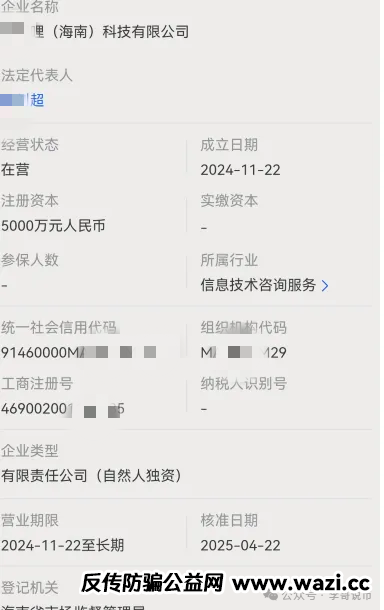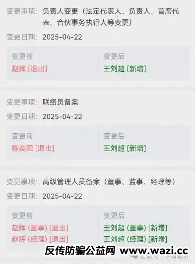 从法人关联链条看,海南公司法人王刘超(2025年4月接盘)、广州公司法人谢志超、哈尔滨公司法人纪宏远之间存在明显关联:纪宏远曾是某区块链传销项目“链享生活”的操盘手,谢志超名下公司亦曾因非法集资被行政处罚。这种用“素人法人”作“白手套”的策略,本质是为日后跑路预留退路——参考此前暴雷的某农副产品资金盘,最终追责时发现所有法人均为农村留守老人,便是典型案例。