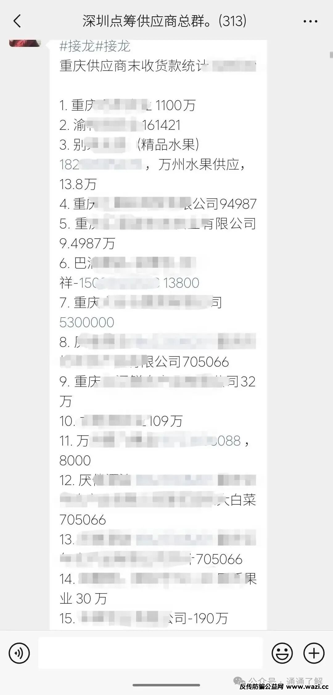 仅重庆双福国际农贸城就有145位商家受损,被拖欠货款从几万到数百万不等,全国累计涉及30多万受害者,涉案金额超百亿。
