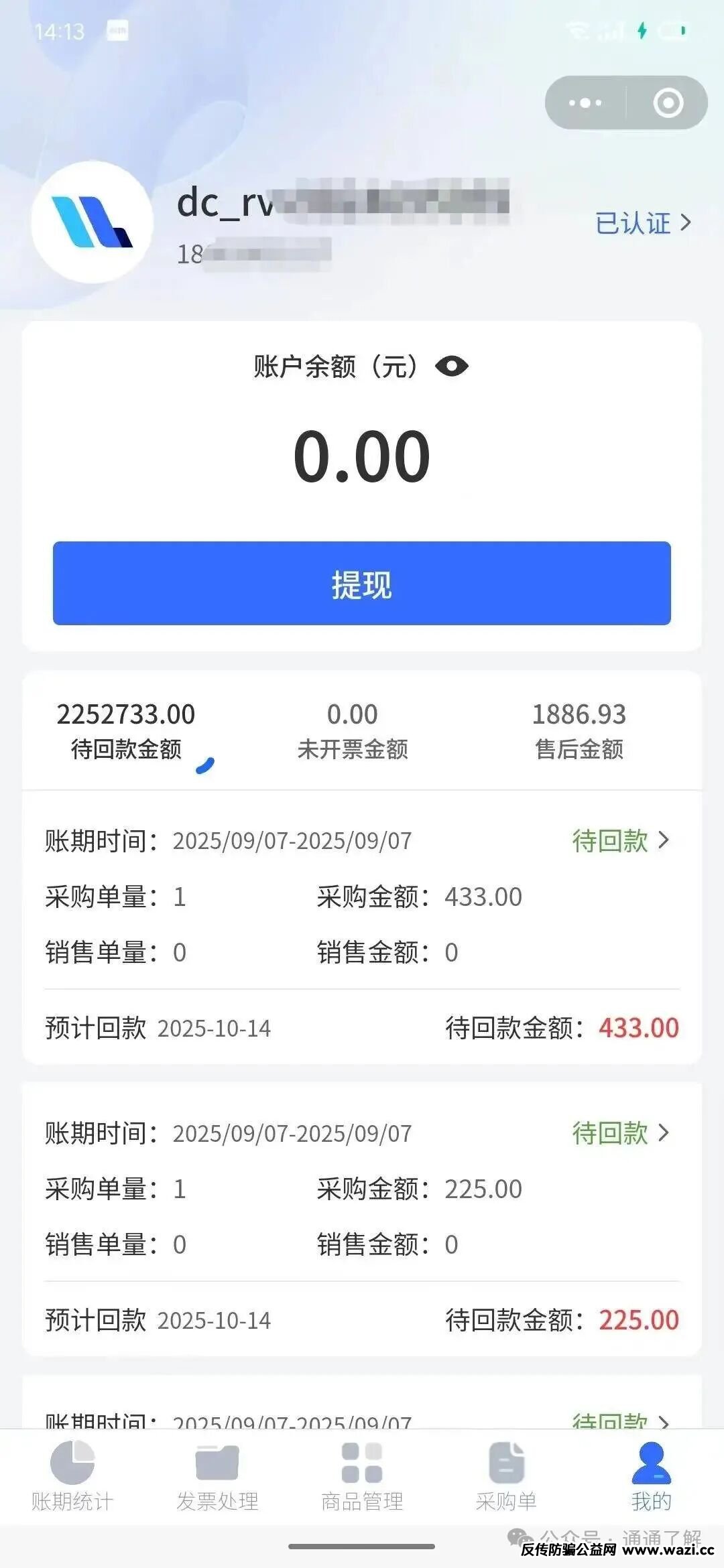 DC农业供应链供应商(商家)后台显示的待回款金额。
