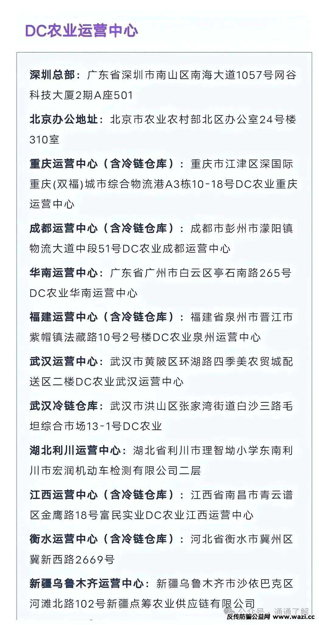 对消费者方面,DC农业推出“农产品预售计划”,承诺用户预购商品后可通过提货、商城代售和折现三种方式处置,并声称能够获得约20%的利润回报。