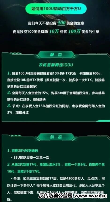 其实就是用htx来做了一个存币生息的资金盘,这种项目很多,现在比较火的还有那个suipro那些,以前大部分都是在波场trx上运行,比如之前很火爆的九环智能合约等等。