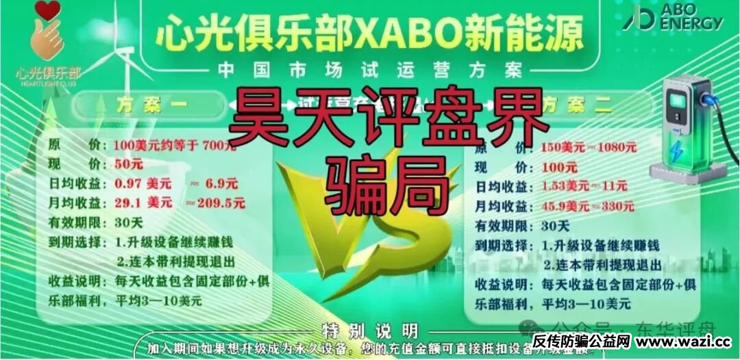 近期不少粉丝爆料了一个叫心光俱乐部(ABO Energy新能源)的项目,昊天看了一下也是一个冒充正规公司的分红类资金盘骗局,日收益1%,月收益30%,典型的杀猪盘骗局,包装的app里让会员买虚假充电桩产品然后可以每日返利,宣称心光俱乐部和ABO是合作关系,利用各种噱头宣传拉人诈骗,高度预警,看见一定要远离...