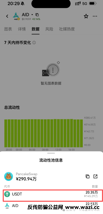 第三,项目所发行的代币Aid,目前也已经进入10倍泡沫区间,属于高位出货阶段。
