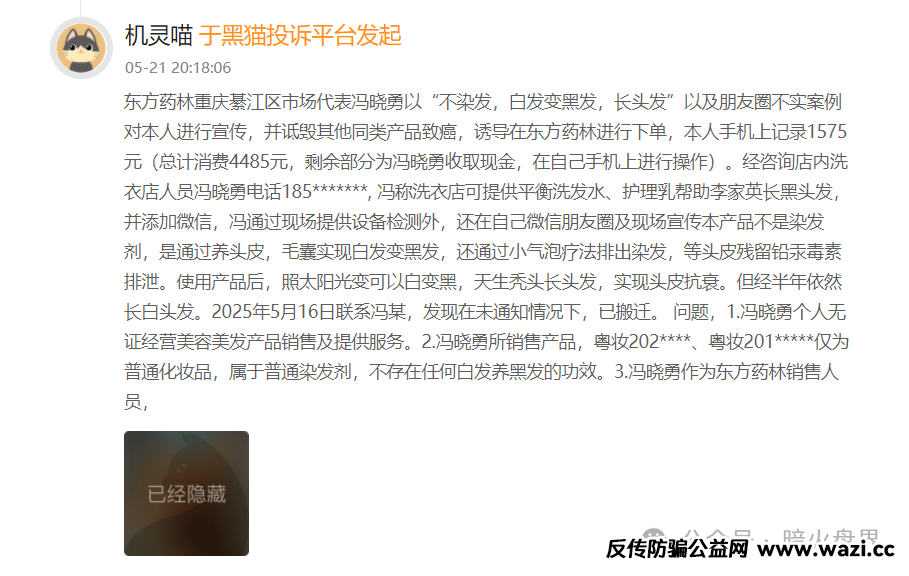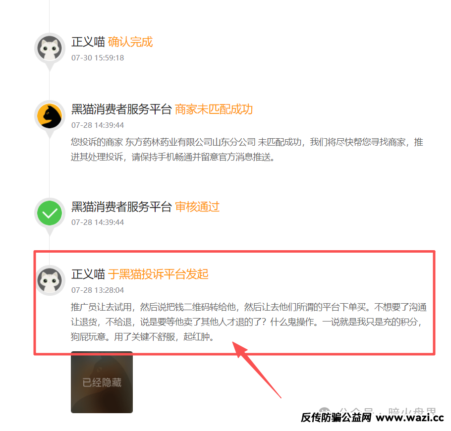 警惕【东方药林】销售模式疑似涉传,产品使用效果不好,遭多人投诉到“黑猫投诉”!
