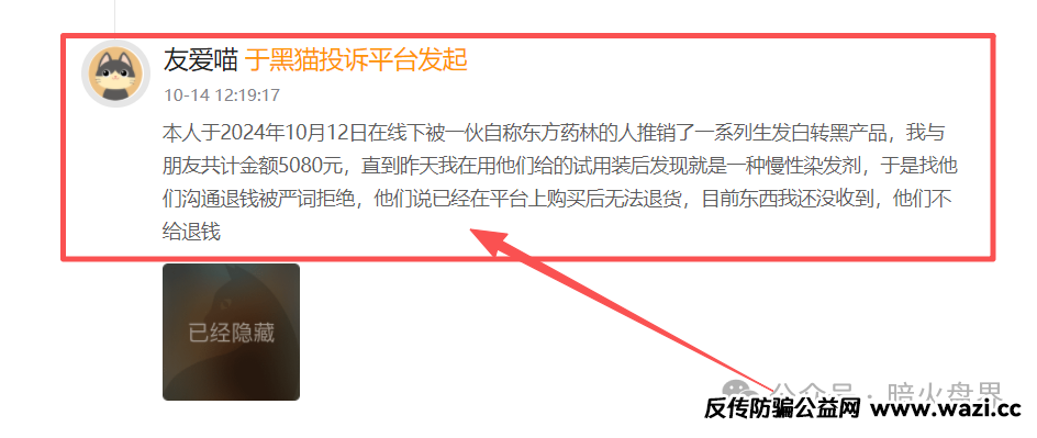 警惕“东方药林”销售模式疑似涉传,产品使用效果不好,遭多人投诉到“黑猫投诉!...