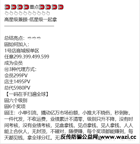 前三个级别:会员、店主、总代都需要个人购买商品分别为299元、1495元、5980元。