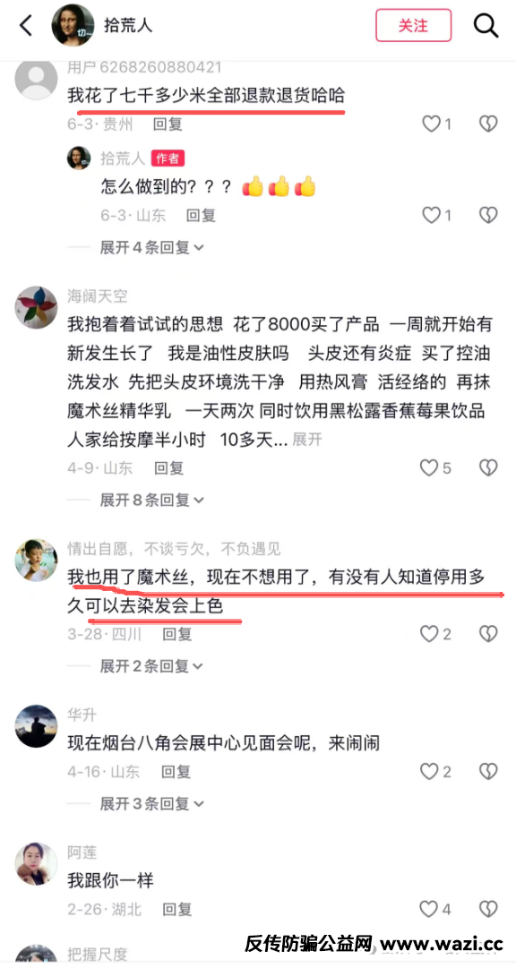 以上只是在“黑猫投诉”一个平台的缩影。随后小诺又在抖音发现大量的消费者,曾经的参与者评论反应产品功效问题、平台涉传问题等。粉丝们要记得互联网是有记忆的,也是公开透明的,很多事情只要你做了就不存在秘密。