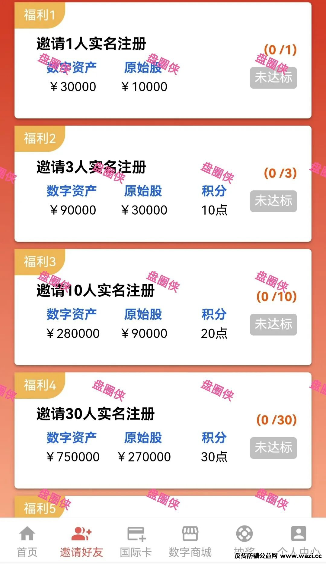 数字人民币:10月30日上线的以数字人民币为噱头的资金盘项目骗局。注册并实名认证可获80000元钱包余额,20000原始股。 每日签到赠送10000红包奖励和2积分,领取1万元红包奖励及2积分,连续签到...