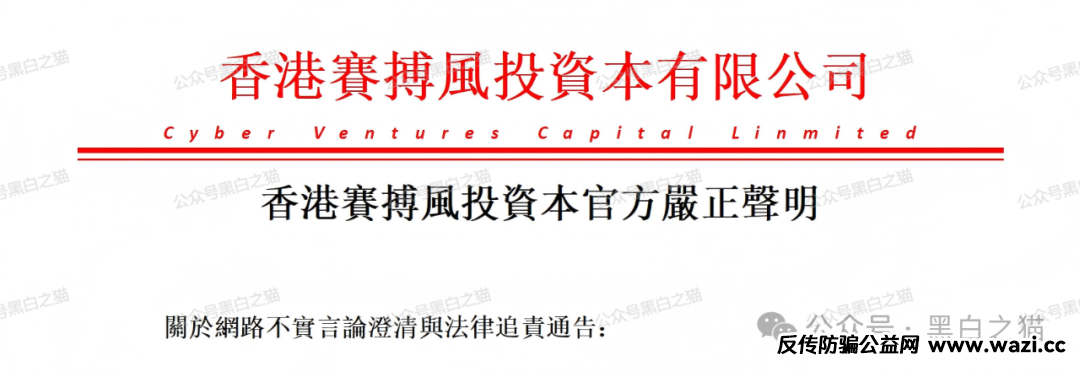 香港赛博风投资本有限公司只是在香港注册处有注册编号和商业登记号,证明注册公司而已,而在香港证监会没有任何此公司中介人持牌信息,所以谈不上被香港证监会列入异常。