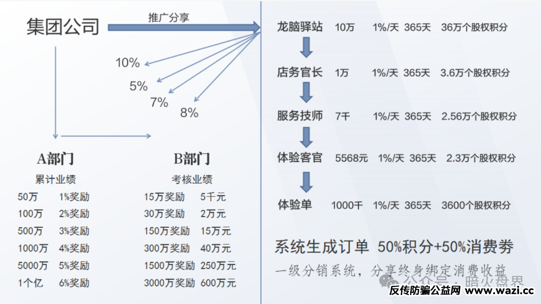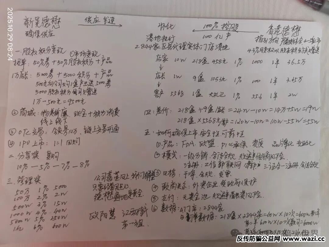 而这个模式设计的巧妙之处在于最高级别“龙脑驿站”的设计上,加入这个级别需要向公司转10万元代理费,公司会给200多瓶产品。五个级别当中只有“龙脑驿站”需要直接向公司转账加入,公司只直接控制这一个最高级别,赚这一份钱,其余的钱都分给了下面的代理。看似是这样的模式,但是又设计了股权积分报单的限制,你想要更多的股权积分,那就要升级啊!最终还是要升级到“龙脑驿站”这个级别。推广人员跟小诺说,全国只有3000个“龙脑驿站”的名额,加入满了之后,公司就不要了。其实这种说辞也就忽悠一下老年人,公司有多少驿站级别的代理,只有公司自己知道,你们又看不到后台数据,当然随便说了!再有3000*10万=3亿,一个产品盘毛收到了三个亿,还不收手等什么呢?这还不算购买消费积分的钱呢!另外说什么股权积分等公司上市可以换股票。这种说法简直就是侮辱智商,这么多年各种盘子都说自己能上市,哪个公司上市了呢?唯独上市那两个都是锁仓,谁变现了?