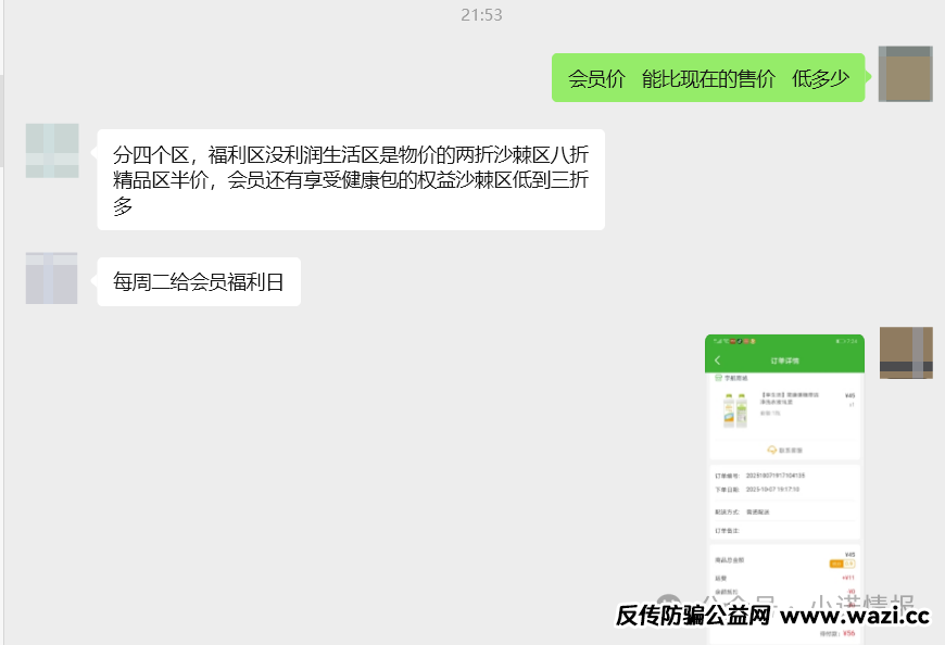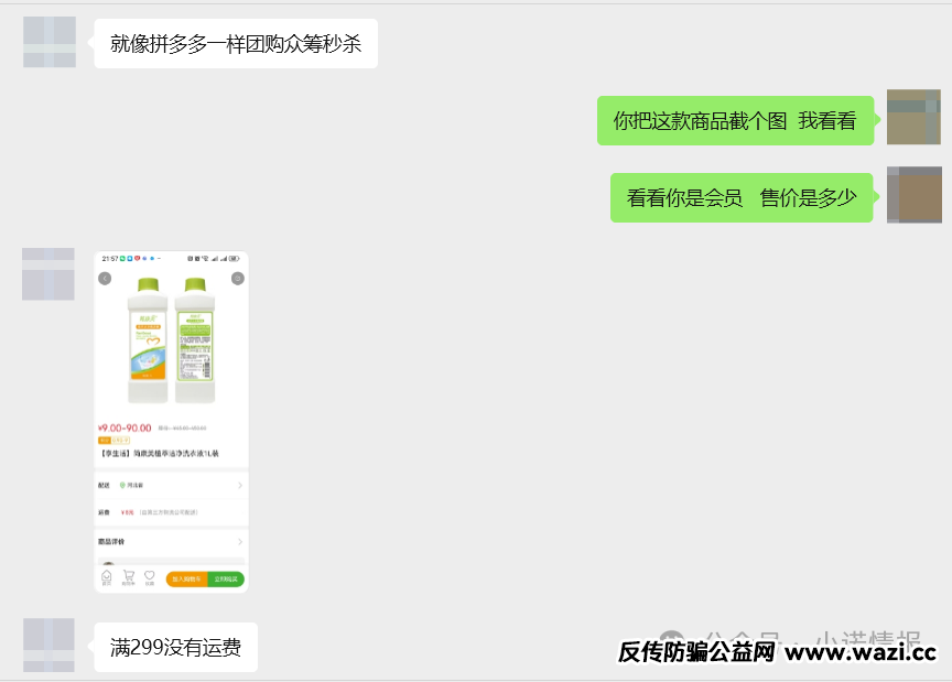 随后推广人员告诉小诺,加入会员后商城商品的售价会降低至会员价。推广人员随后给小诺展示了刚才这款商品的会员价为单瓶9元,算上运费11元,售价也达到了20元。要一次性消费满299元才能享受包邮。并且要加入会员最低需要在商城购买2000元的商品。大家想想20元的价格也要比淘宝的售价高出不少。