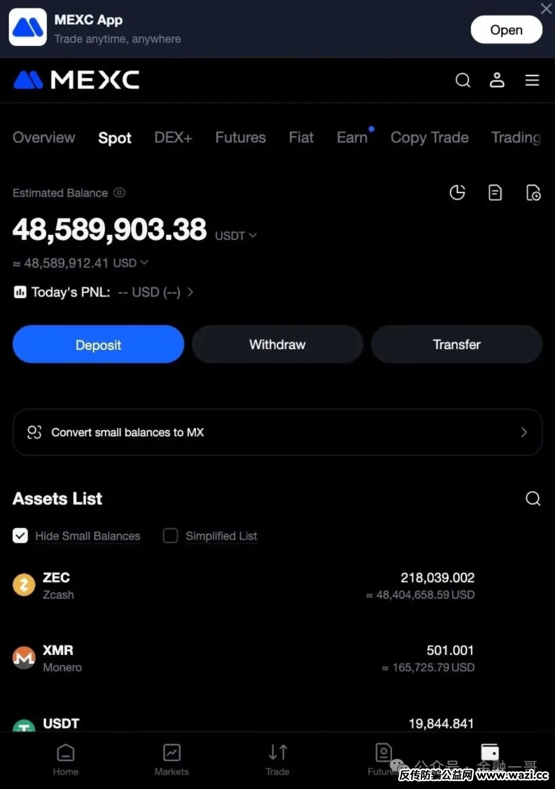 “抹茶MEXC”交易所陷入崩盘危机:一用户21.8万枚ZEC被MEXC冻结无法提现,价值超过9000万美金