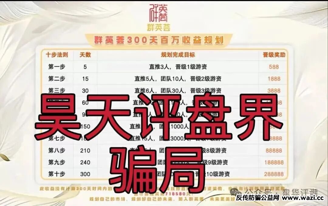 这个骗局昊天7月的时候曝光过,8月25号崩盘跑路的,随后二次收割平移到了这个泓睿汇(群英荟)股票跟单类资金盘骗局,还是那伙诈骗团伙开的,模式还是老套路从彩票跟单改成了股票跟单,资料和模式如下: