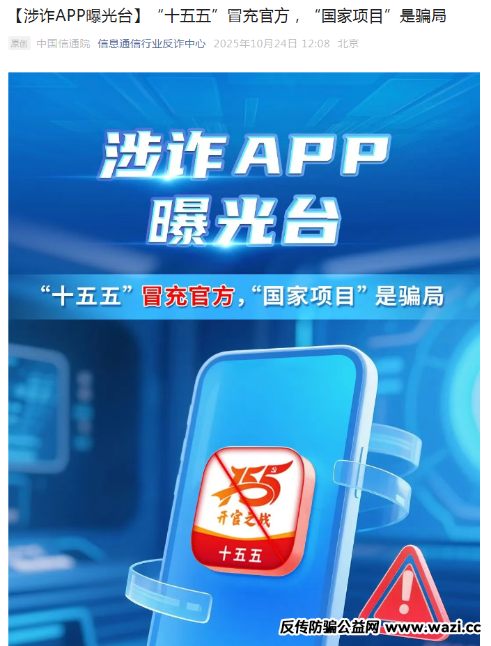8、假冒的 “十五五规划战略委员会” APP:冒用 “十五五规划” 官方名义,虚构国家项目;网站 IP 在日本(非法),微信提示安全风险,仅能浏览器注册,诱导向 14 个个人账户充值,属民族资产解冻类诈骗。