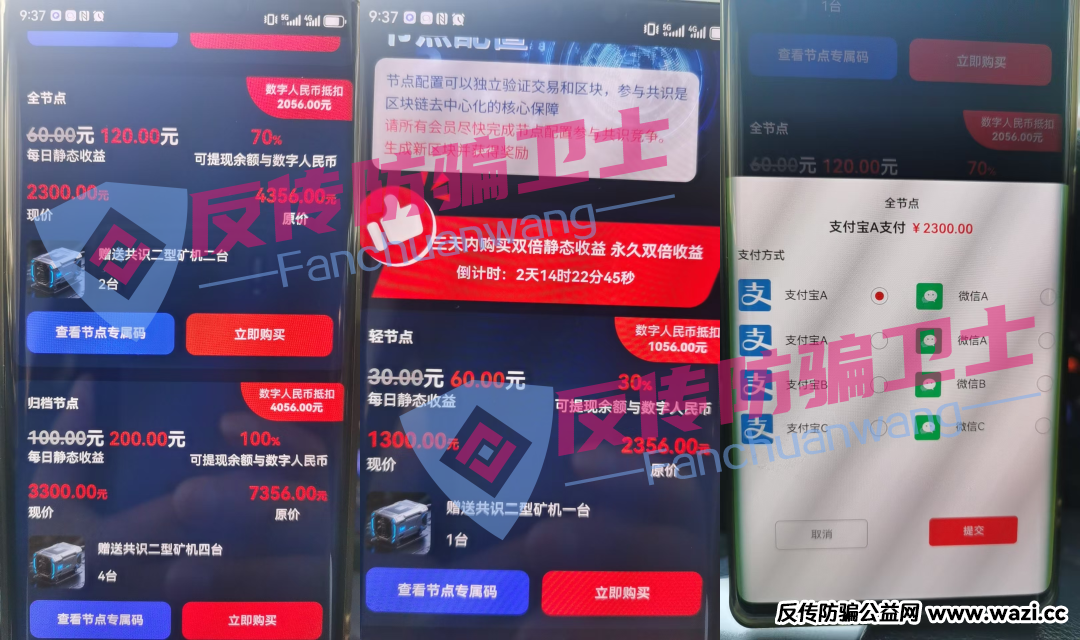 1、万通保险:万通保险系列项目是典型的虚假金融传销骗局。它以违背金融常识的超高收益(如投保 1.5 万宣称总受益超 5 万)为诱饵,设置传销式层级佣金制度,靠 “拉人头” 发展下线牟利;冒用正规万通保险品牌混淆视听,用品牌微波炉、手机等赠品或抵扣券诱导投资者,尤其瞄准中老年群体;混淆保险、理财、投资概念,推出无资质的虚假产品(如虚假股票投资链接险、不实医疗报销承诺);还通过 “每日返息”“短期体验计划” 快速建立虚假信任,让投资者短期内看到 “收益” 后,进一步投入资金或发展下线。其本质是庞氏骗局,靠新入局者的资金填补旧账,一旦资金链断裂,参与者的投入将血本无归。