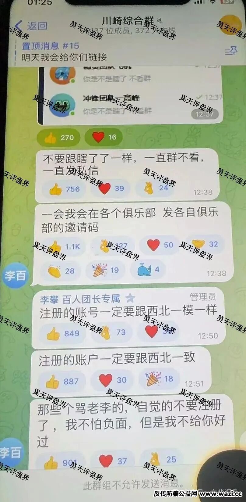 昊天评盘界友情提醒:川崎资管股票跟单类资金盘骗局,第三次收割已经结束,能被割三次的人大家觉得是不是活该?新人看见一定要远离!后面会持续关注!近期知乎,小红书,微博,抖音等app都有冒充昊天的诈骗团伙,记住了我们不做项目,更不会去推广任何项目,除公众号外其他一律不是本人,切勿上当受骗!