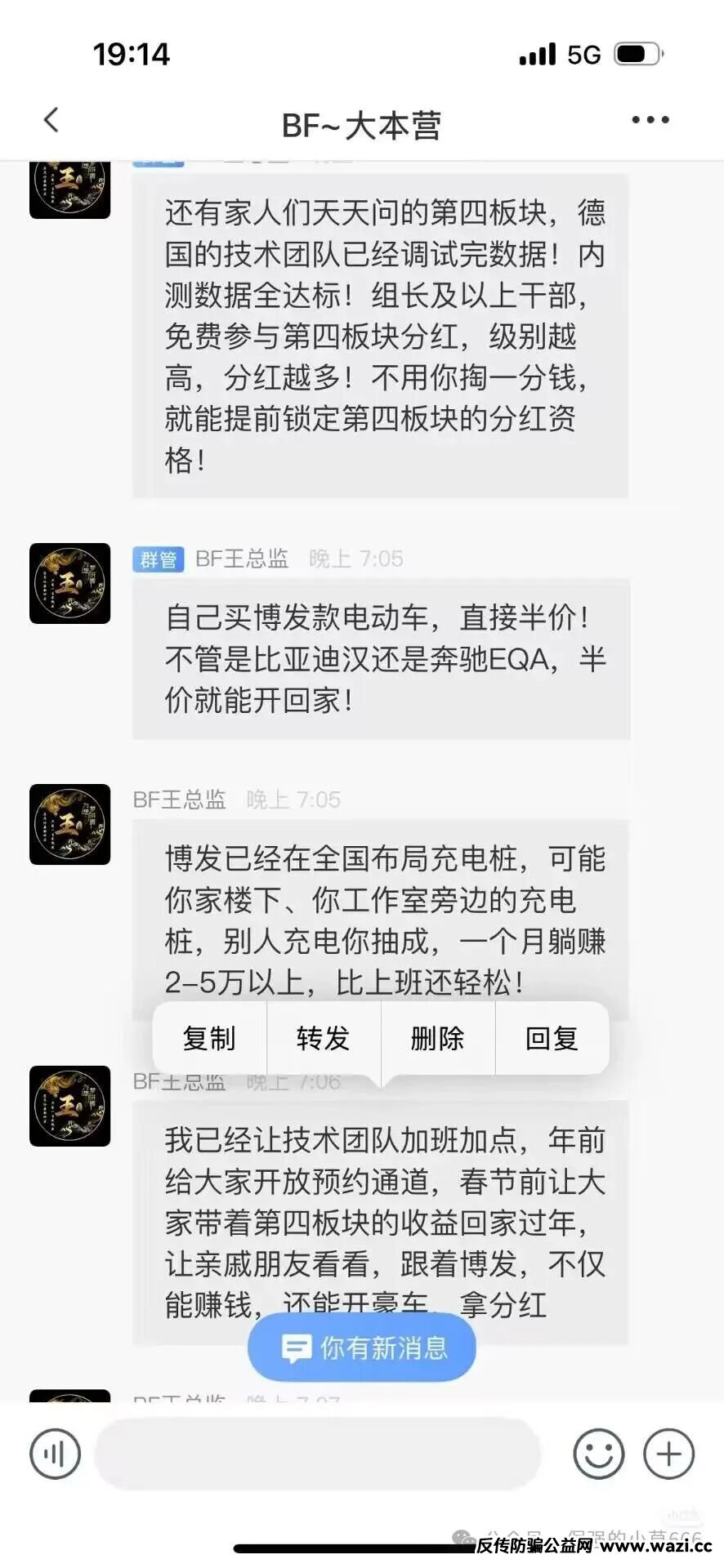 更荒唐的是,平台最近还在鼓吹即将上线的“第四板块”,声称要进军新能源汽车领域,推荐用户投资购车拿高额提成。然而,经多方查证,没有任何一家正规车企曾与“博发”有过合作声明或官方回应。