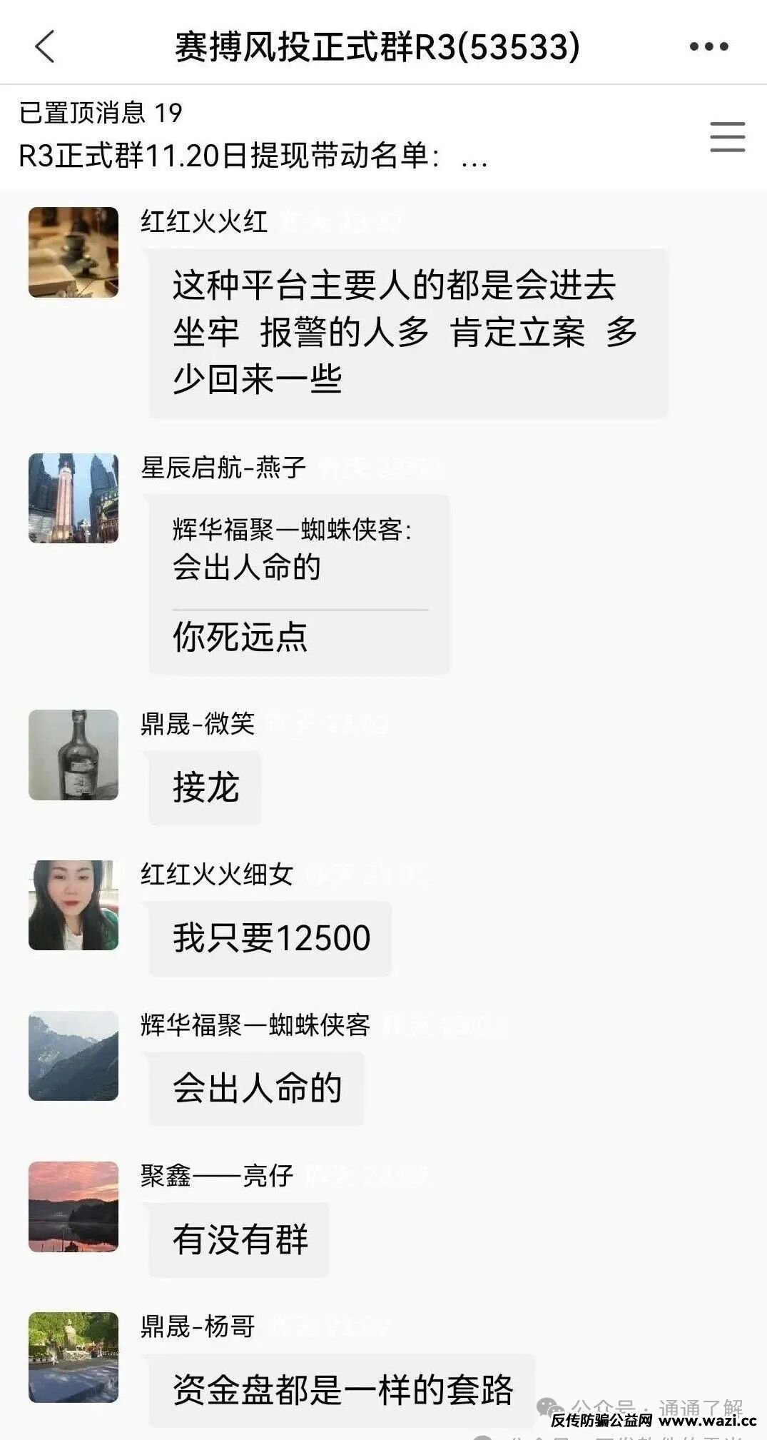 近日,一个名为"赛搏风投恒富证券)"的投资平台突然崩盘跑路,数万名投资者无法提现,平台甚至要求用户再缴纳本金的8%作为"保证金"才能提现,这明显是最后的收割行为。