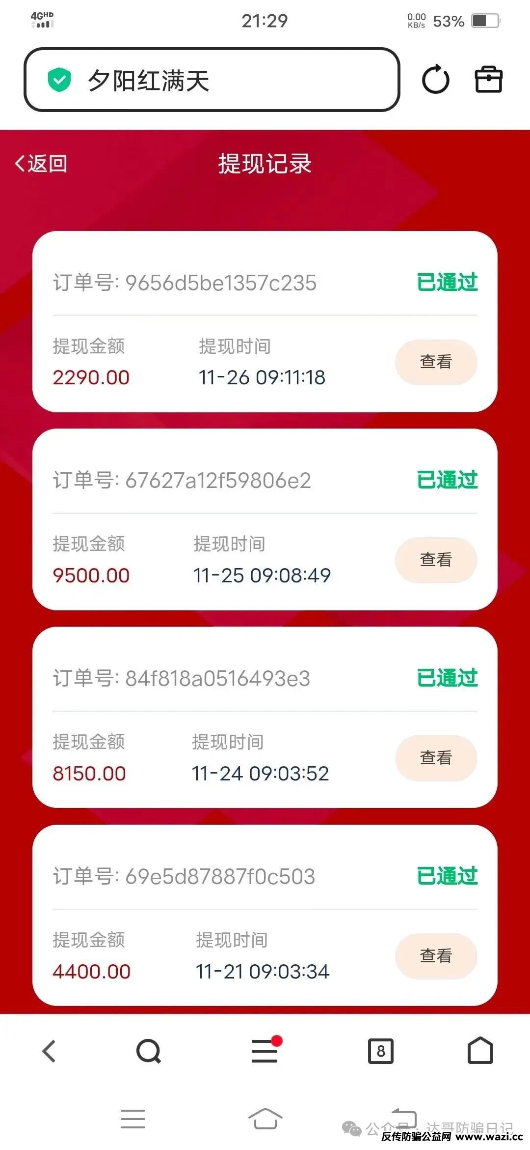 崩盘提醒:【夕阳红满天】资金盘即将收网,操盘手的狂欢,韭菜们的噩梦,及时止损,不要越陷越深!