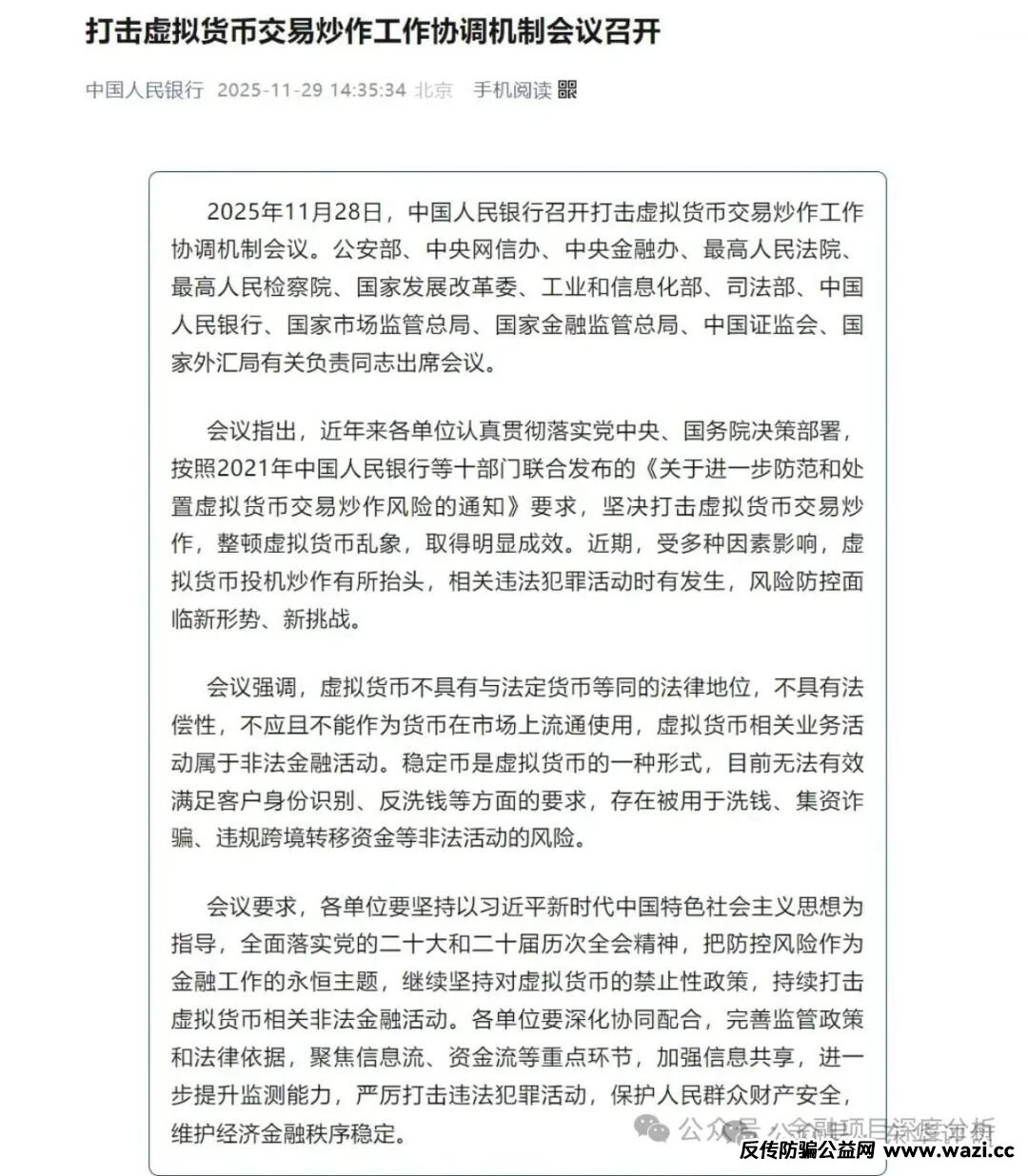 近日,中国人民银行牵头召开打击虚拟货币交易炒作工作协调机制会议。会议再次明确强调我国针对虚拟货币一贯秉持的禁止性政策,其实就是为了打击这些利用虚拟货币搞资金盘的骗局!