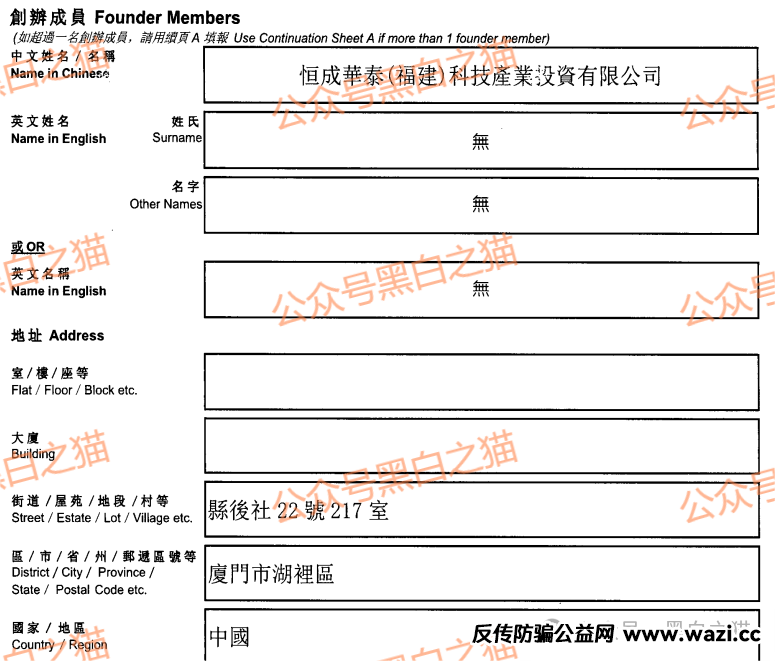 根据香港注册处信息查询,代办秘书公司在2025.4.27注册華騰星寰(香港)金融有限公司时,填写的唯一创办成员为恒成华泰(福建)科技产业投资有限公司。
