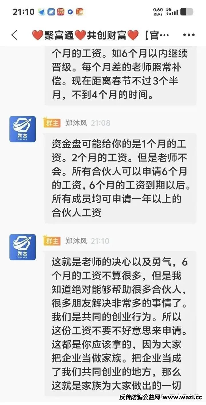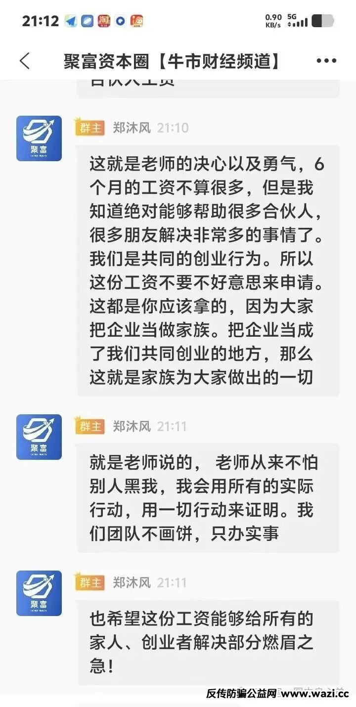 今天粉丝前来咨询一个项目,聚富通股票跟单,所谓话术还是老三样,有内部聊天群,有专门老师带单,大多数都是一样,群里洗脑,营造赚钱效应。