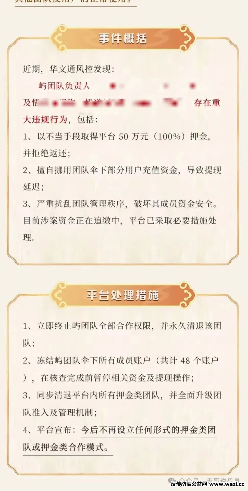 震哥接到粉丝爆料,华文通公司在杭州,是个数藏慢涨资金盘骗局,每天利息2%,是个彻头彻尾的资金盘骗局,现在已经单割了很多会员,充值到平台无法提现,账户还被冻结。 平台还甩锅团队长...