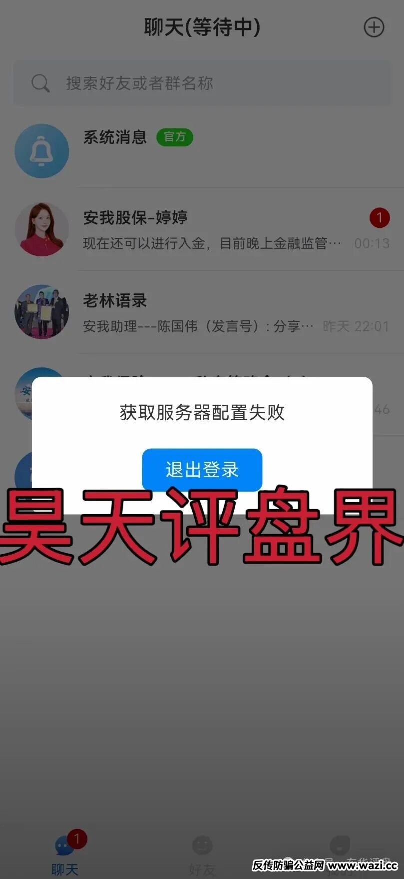 昊天评盘界:今天粉丝爆料安我股保资金盘骗局,今日正式关网跑路了,林天新又改名开新盘继续割了,你又去新盘填坑了吗?这个盘昊天也是预警了很多次了,你亏了只能说自己太贪了,早期正规公司出面打假你怎么不撤?现在关网了,彻底死心了吧: