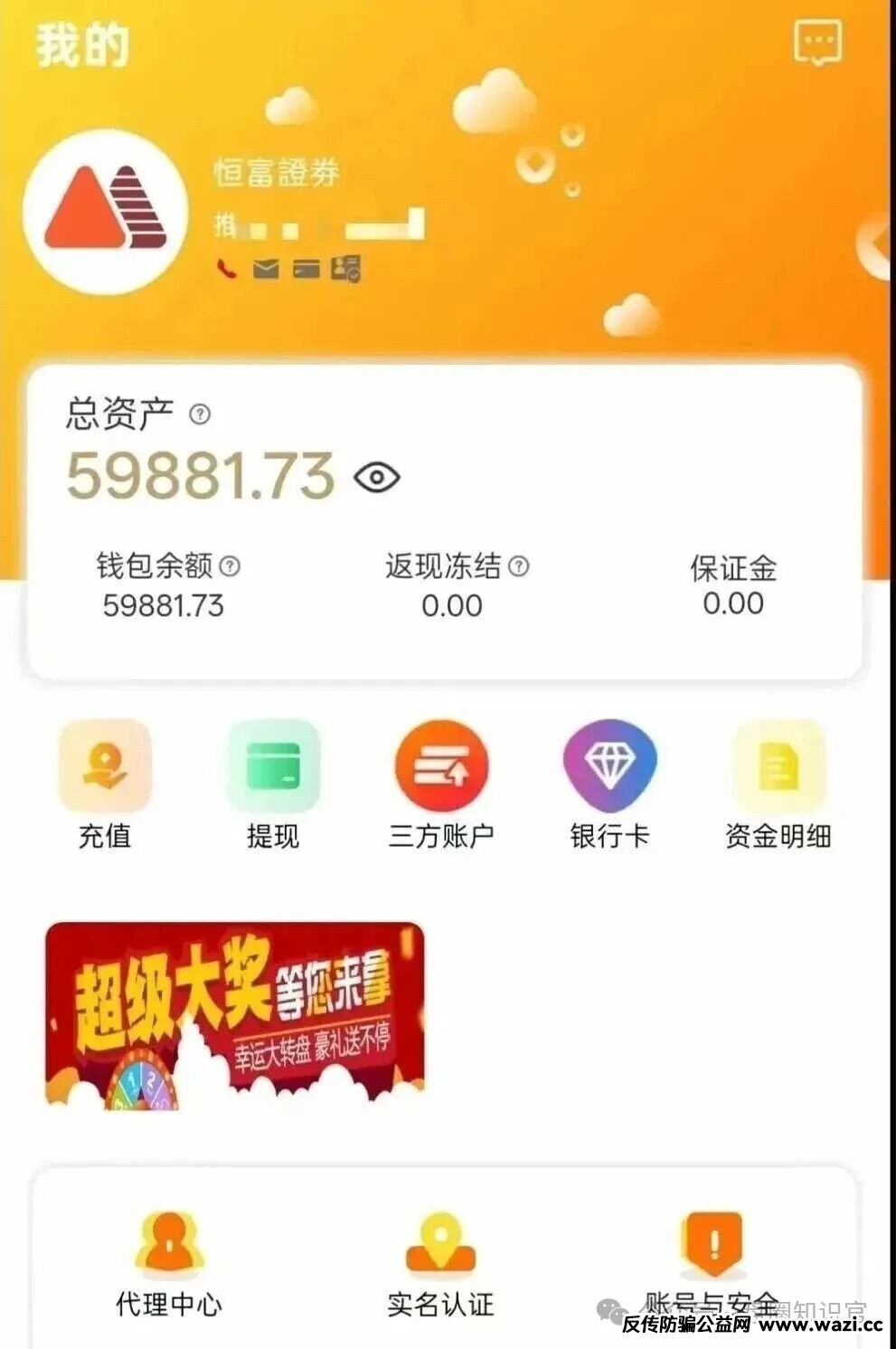 骗局的套路并不复杂,却精准抓住了人性的贪婪。平台先是冒用 “恒富” 系金融机构的名号,伪造证监会备案文件和银行托管协议,打造 “正规靠谱” 的虚假形象,让投资者放下戒心。