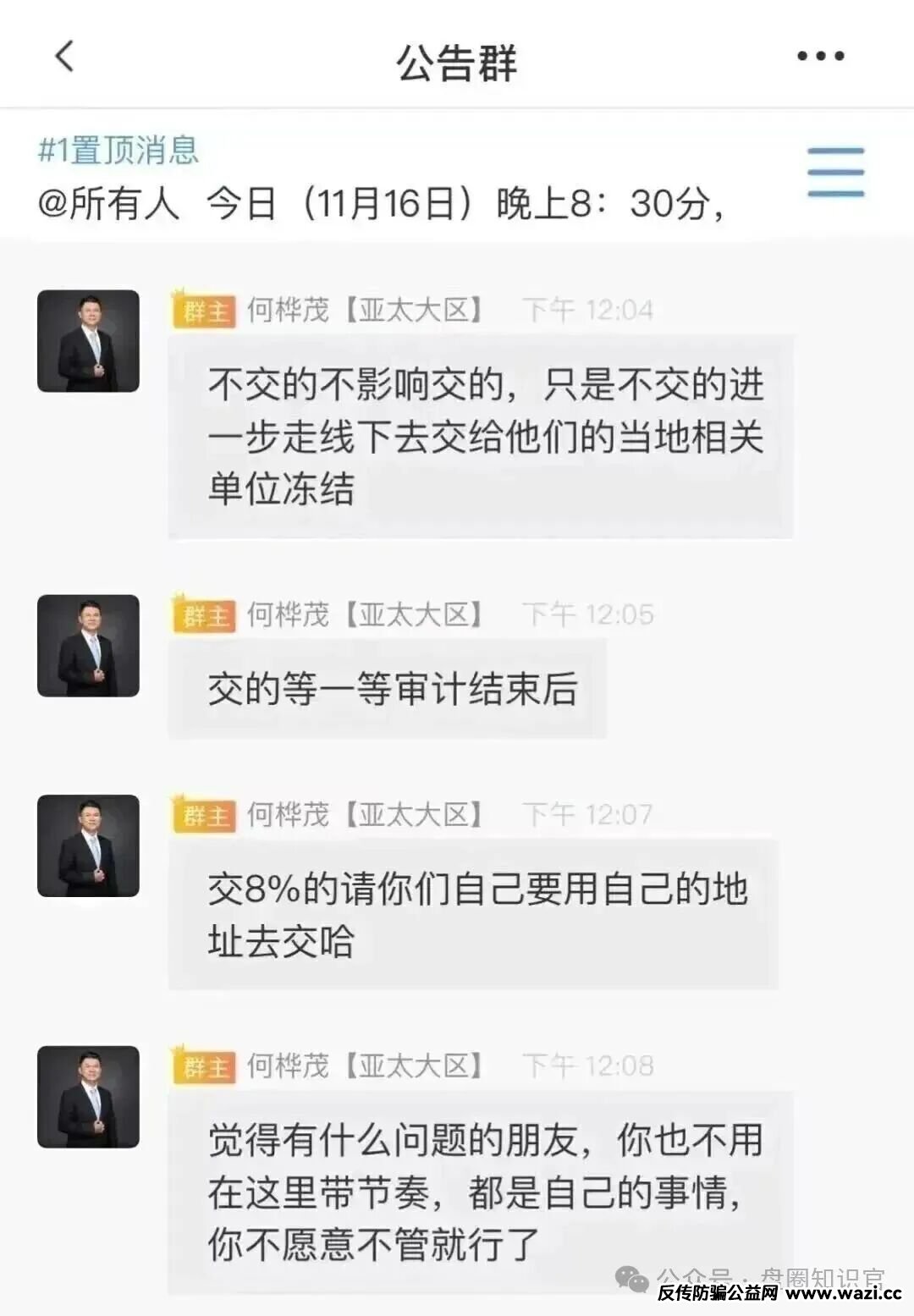 崩盘的信号早已显现。从 2025 年 9 月开始,就有投资者遭遇提现困难,平台以 “系统升级”“账户异常” 等理由拖延;到 11 月中旬,操盘手推出 “审计费” 方案,要求用户缴纳账户余额 8% 的验证金才给提现,实为最后的收割;11 月 22 日,平台全面停止提现,APP 无法登录,客服集体失联,彻底宣告崩盘。在此之前,湖北、广西、成都等地的线下办公点已连夜搬空,APP 频繁闪退、数据异常,社群管理员疯狂踢除质疑者并最终解散用户群,这些明显的危险信号,却被不少沉浸在 “暴富幻想” 中的投资者忽视。