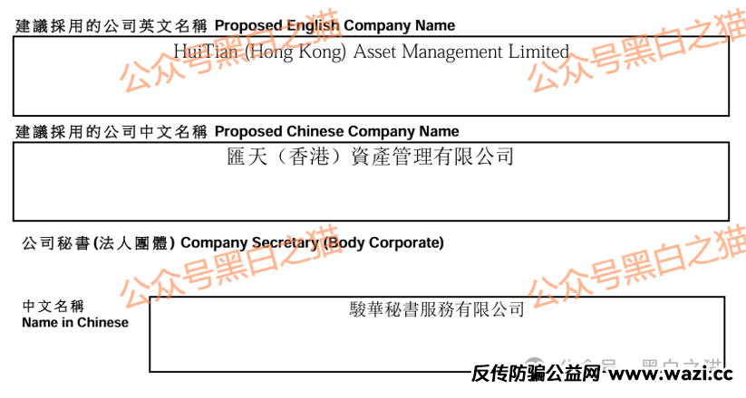 汇天(香港)资产管理有限公司,成立2025.4.8,创始人及董事为詹某,陕西省商洛市洛南县某社区人士,身份识别用的护照号码。