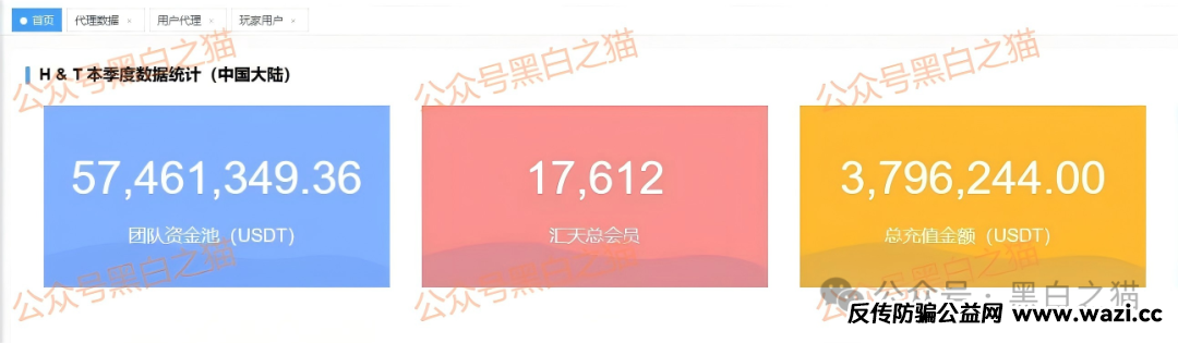 据操盘手给大团长亮出来的后台数据,汇天总投资的会员17612人,充值金额近380万USDT,几个项目下来,团队资金池金额达到5746万USDT,换算就是4亿人民币。