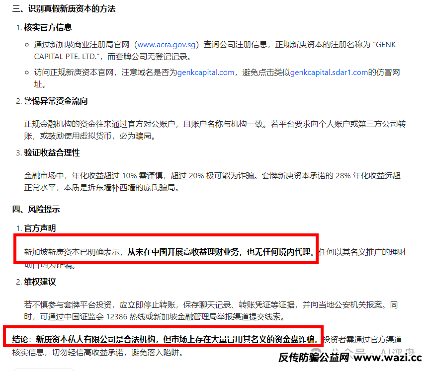 豆包也分析出,新庚资本被不法分子冒用,并且明确表示,在中国没有开展任何业务,也没有代理。所以,你们在国内参与的新庚资本其实是一个资金盘骗局,不是正规的,有着随时跑路的可能!!快快远离!