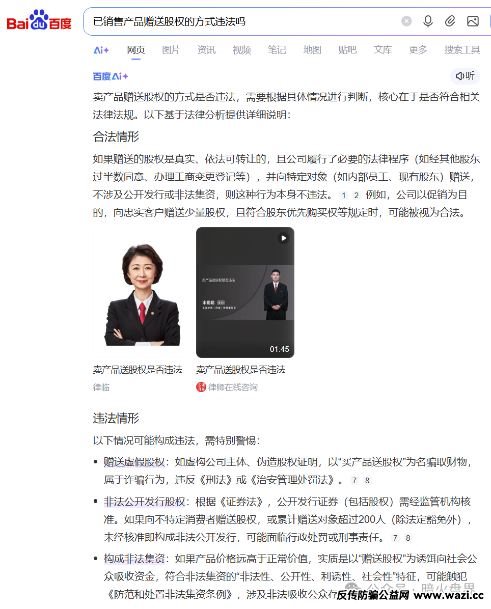·赠送虚假股权:如虚构公司主体、伪造股权证明,以“买产品送股权”为名骗取财物,属于诈骗行为,违反《刑法》或《治安管理处罚法》。