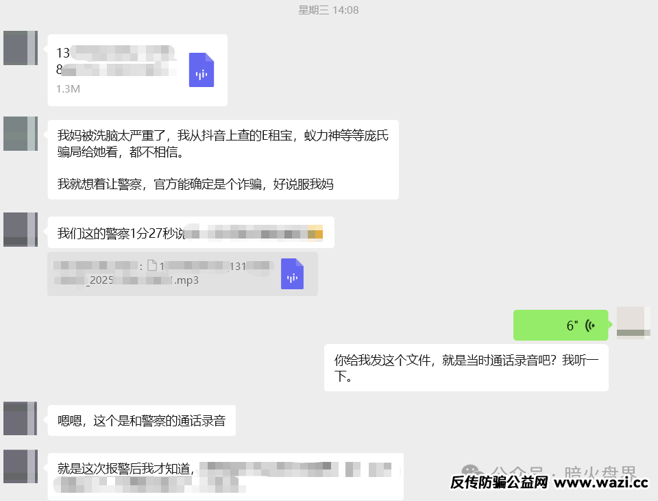 上面截图中的录音是派出所民警口头提醒报案人,秒音属于诈骗,要谨防家人上当受骗!