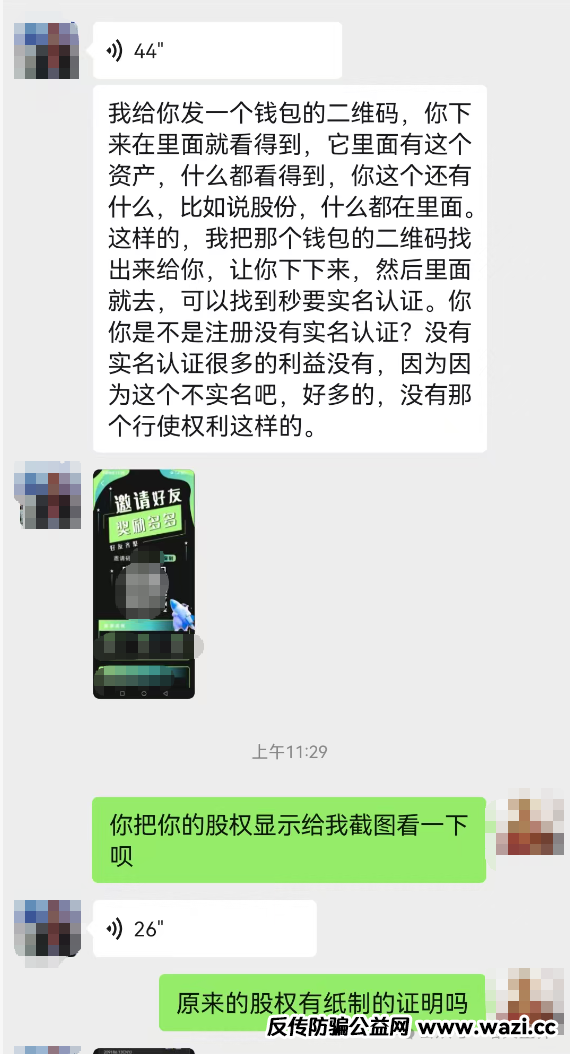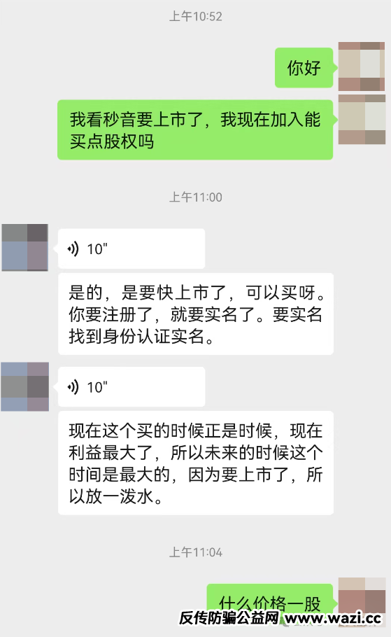 下面是小诺和秒音科技的推广人员的微信对话截图,对方跟随秒音8年,可以说被洗脑洗的很彻底。他跟小诺说秒音要上市了,现在买产品加入进来就送股权!并给小诺展示他自己曾经过得的股权证明。