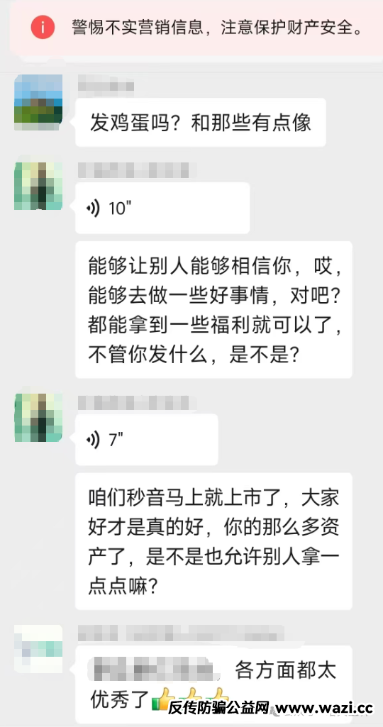 下面是秒音会员群的聊天截图,大家可以看看这些老年人被洗脑洗的更是彻底,都在这里做着上市发财梦呢!