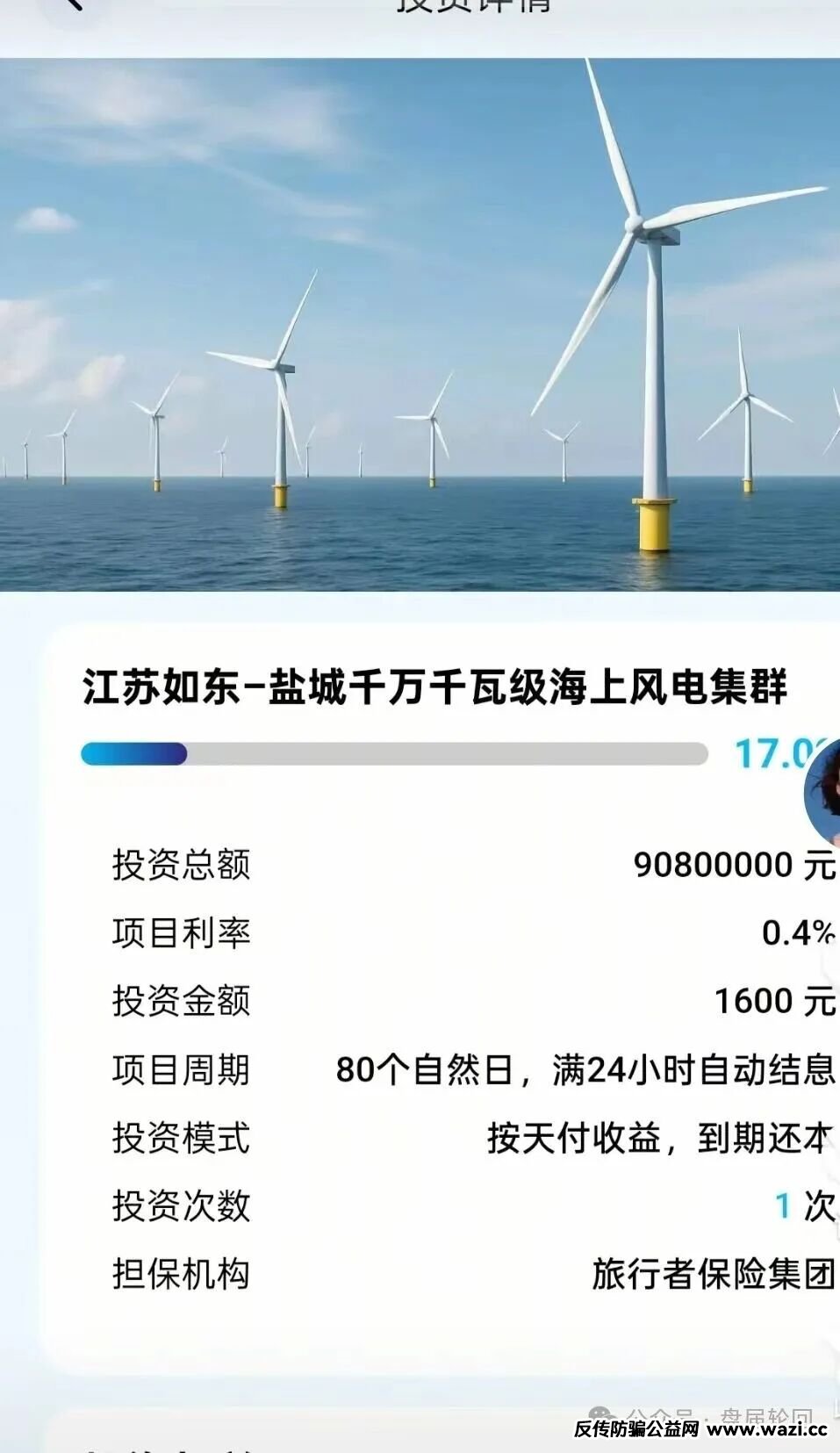 我们在看投资利率江苏如东盐城 千万千瓦级海上风电集群,项目需要融资9800万 ,日利润 0.4 月化利润 百分之12% ,这么高的利润 能轮得到你们来投资 ?
